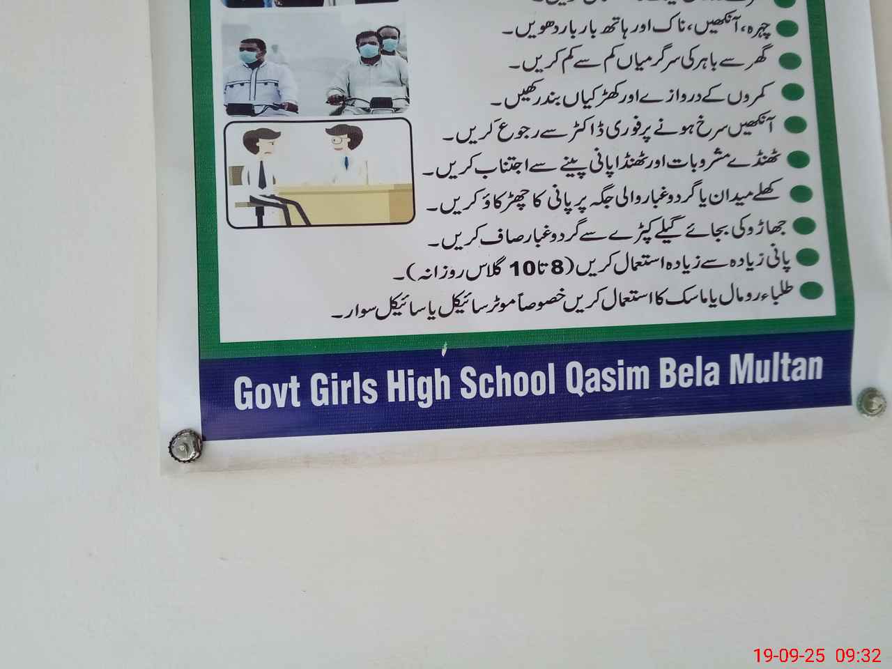 | EMIS Code: 36110809 | Name of School: GGHS QASIM BELA MULTAN | |||