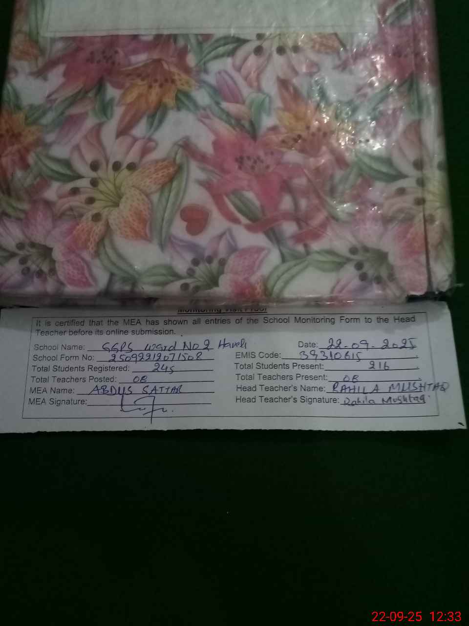 | EMIS Code: 39310615 | Name of School: GGPS WARD NO.2 HAVELI | |||
