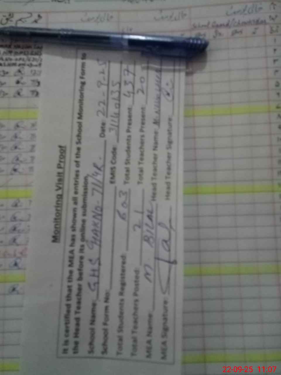 | Attendance Register | Head Teacher | MEA with School | Visit Proof |