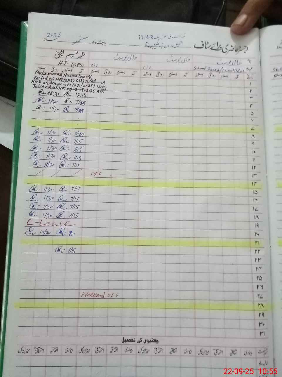| CNIC | Full Name | Designation | R/C | Absence During Last Calender Month |