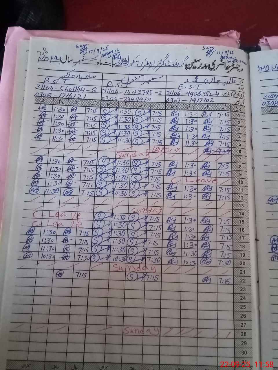 | CNIC | Full Name | Designation | R/C | Absence During Last Calender Month |