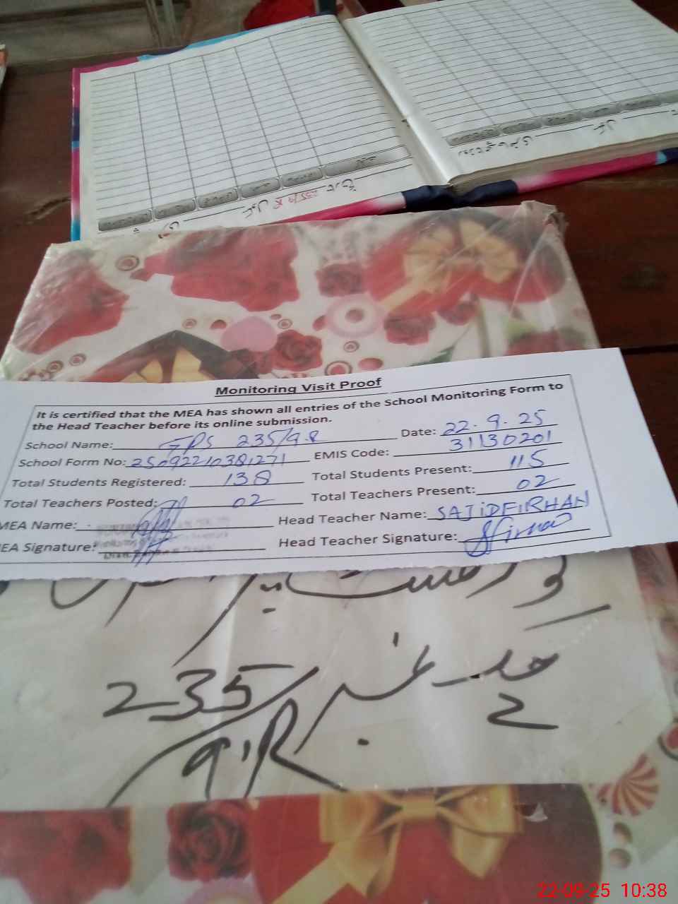 | EMIS Code: 31130201 | Name of School: GPS CHAK 235/9-R | |||