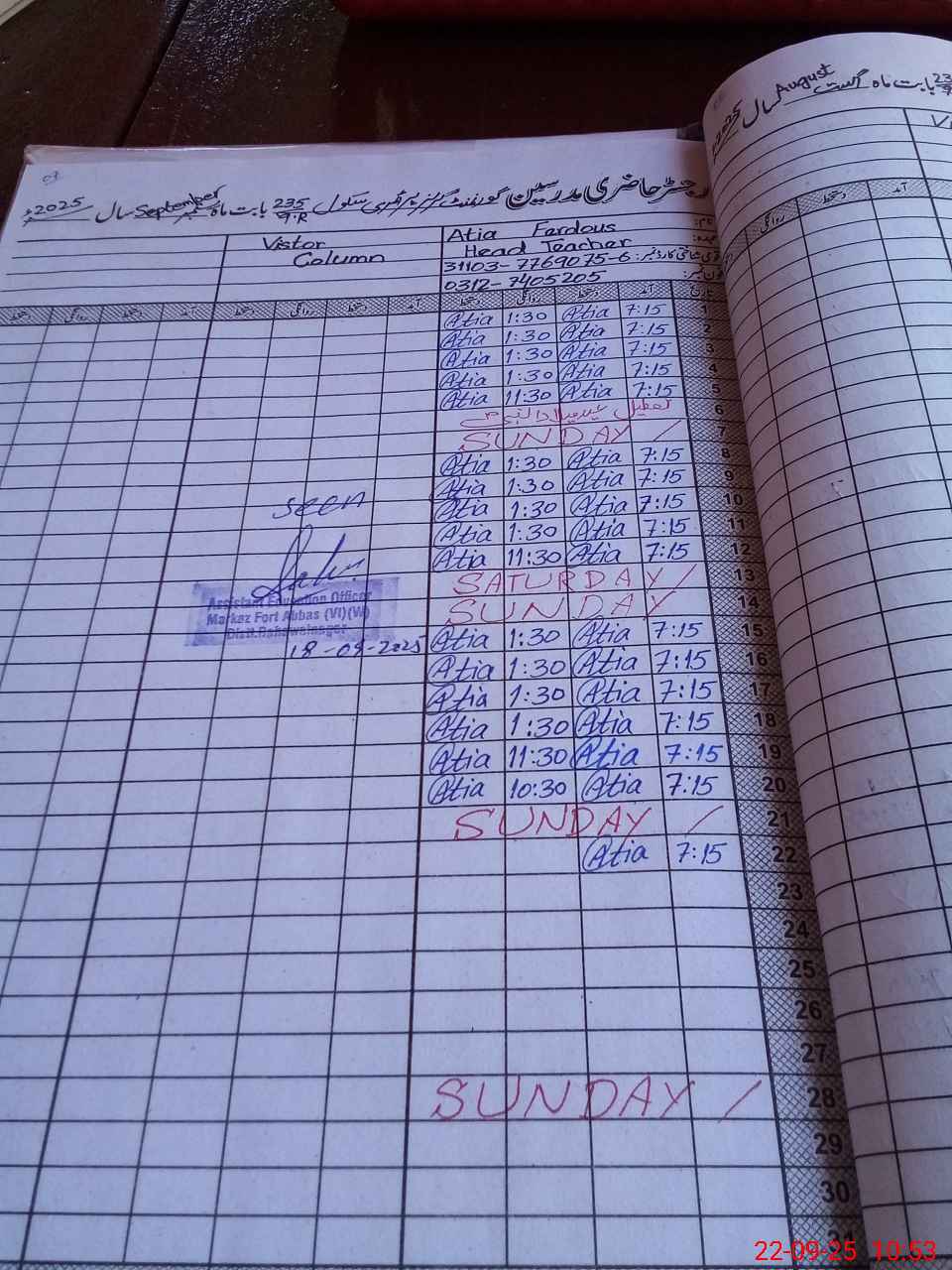 | Name: At**** Fa**** Designation: (School Headmaster's/Headmistress's) Pst Phone/Cell Number: 03**** |