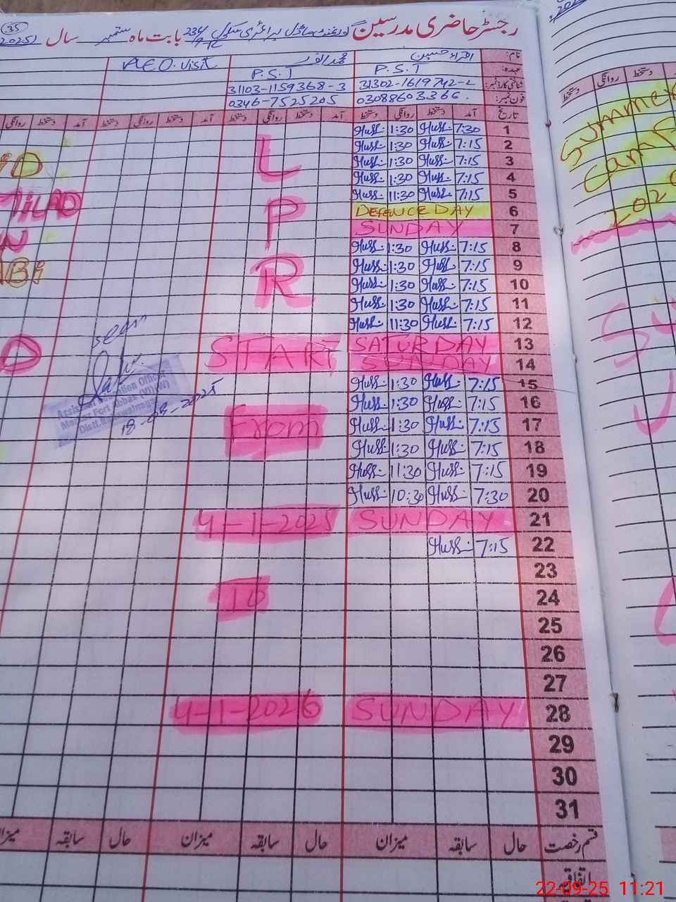 | Name: Iq**** Hu**** Designation: (School Headmaster's/Headmistress's) PST Phone/Cell Number: 03**** |