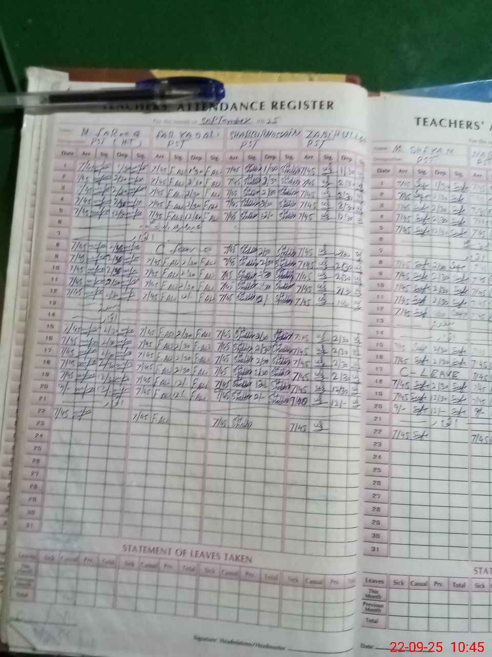 | 34**** | Mu**** Su**** | ESE | Contract | 0 | 0 | 0 | 0 | 0 | 0 | 0 | 0 | 0 | Absent (Un-Authorized) |