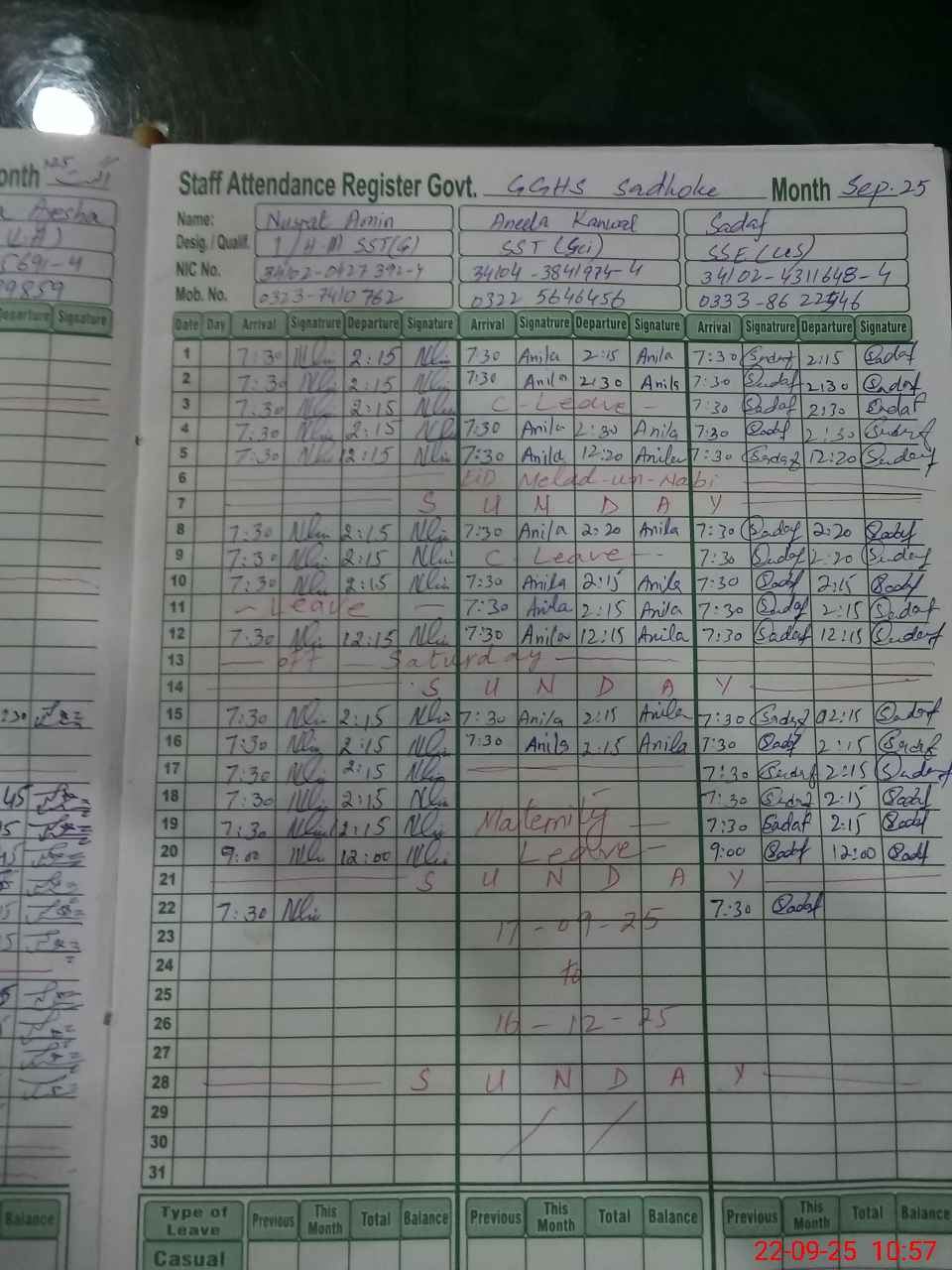 | Name: NU**** AM**** Designation: (School Headmaster's/Headmistress's) SST INC HEAD Phone/Cell Number: 03**** |