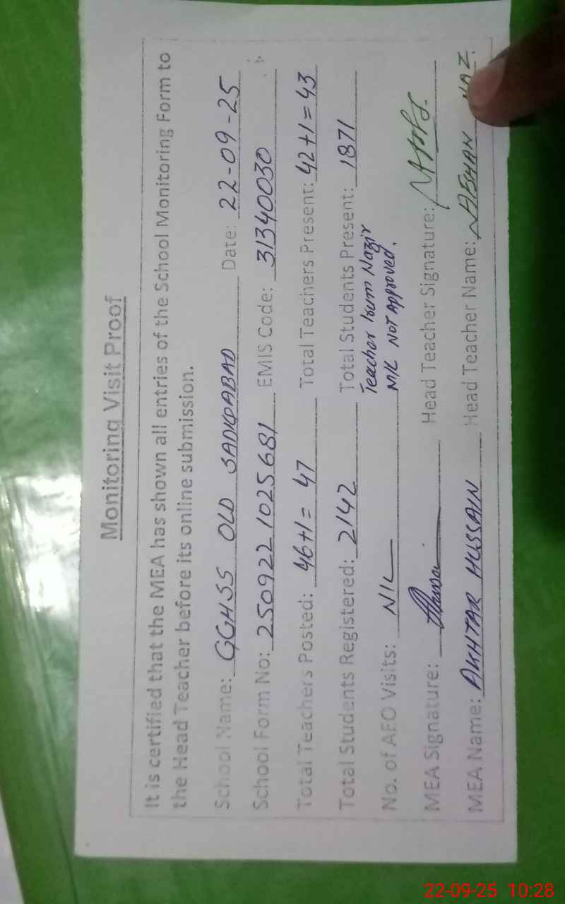 | EMIS Code: 31340030 | Name of School: GGHSS OLD | |||