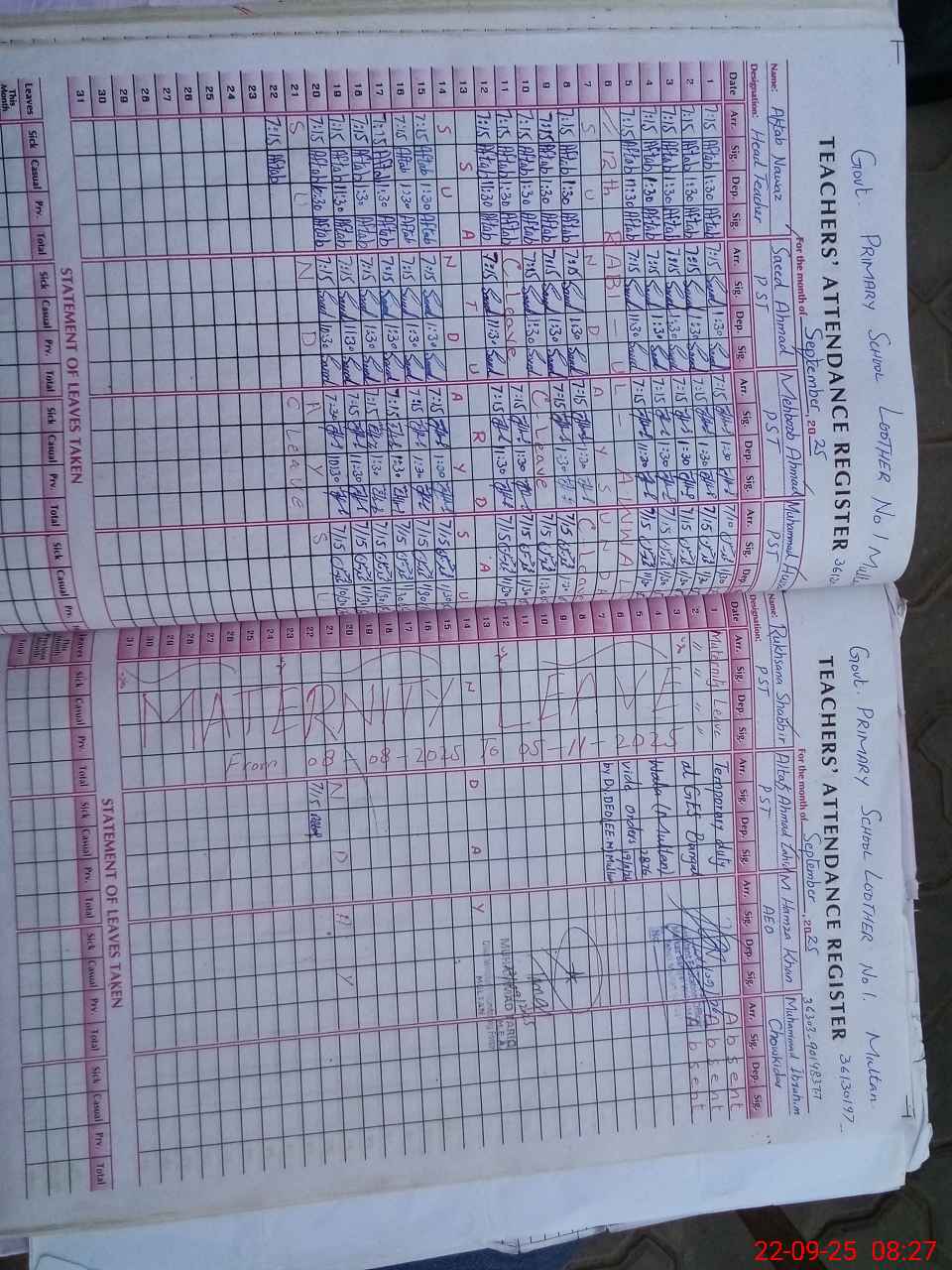 | 36**** | Ru**** Sh**** | ESE | Contract | 0 | 0 | 0 | 0 | 0 | 0 | 0 | 0 | 0 | Maternity |