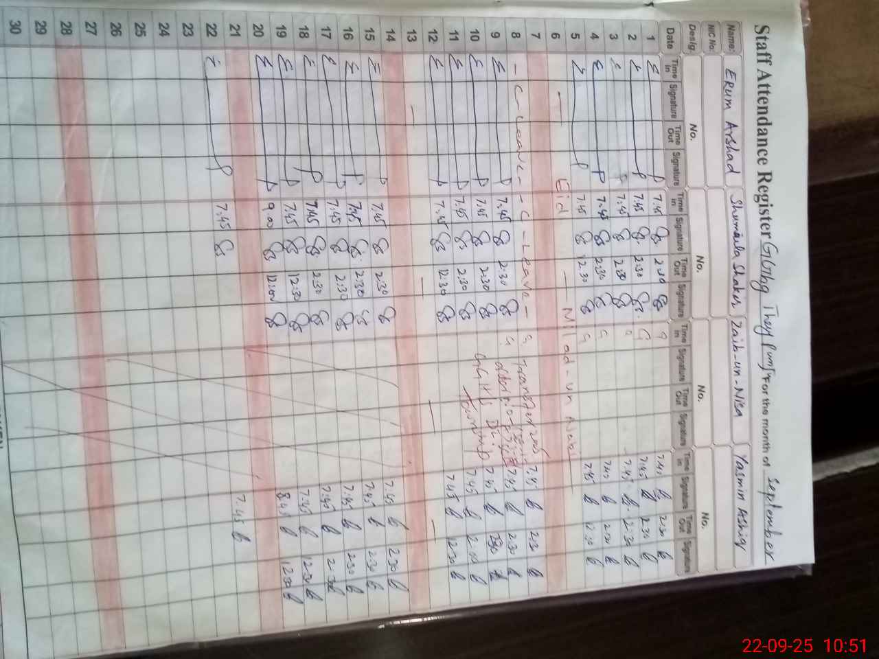 | CNIC | Full Name | Designation | R/C | Absence During Last Calender Month |
