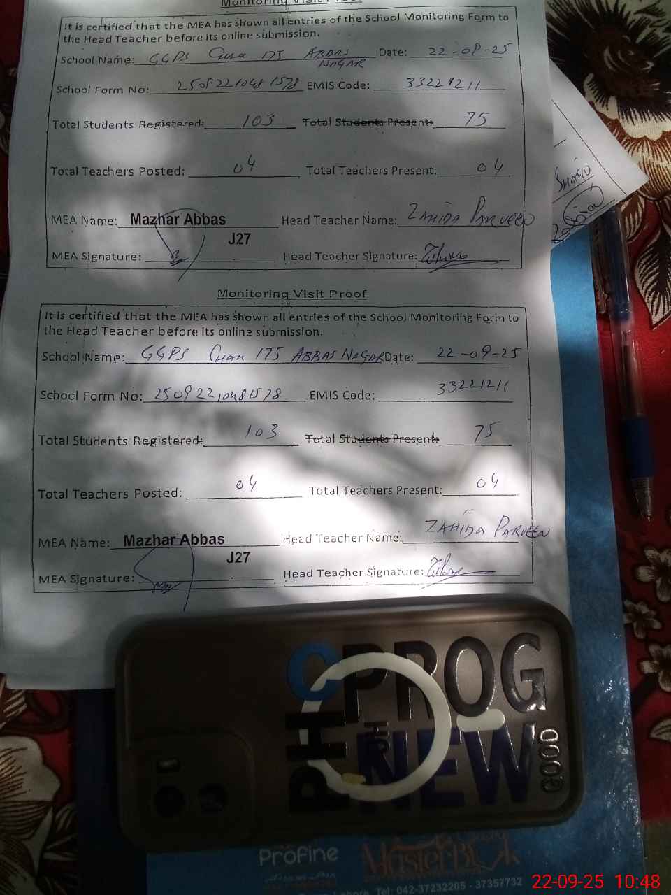 | Attendance Register | Head Teacher | MEA with School | Visit Proof |