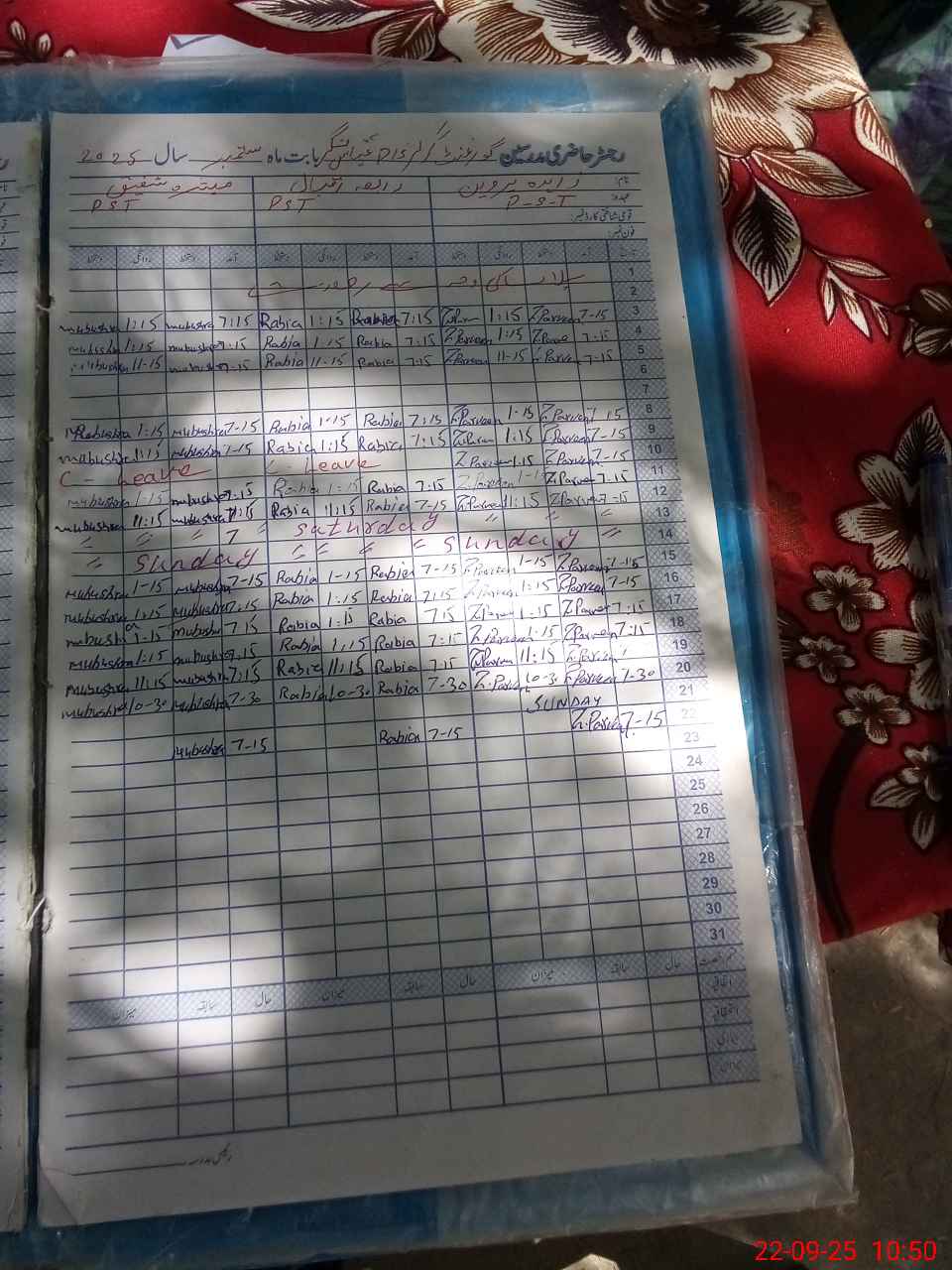 | CNIC | Full Name | Designation | R/C | Absence During Last Calender Month |