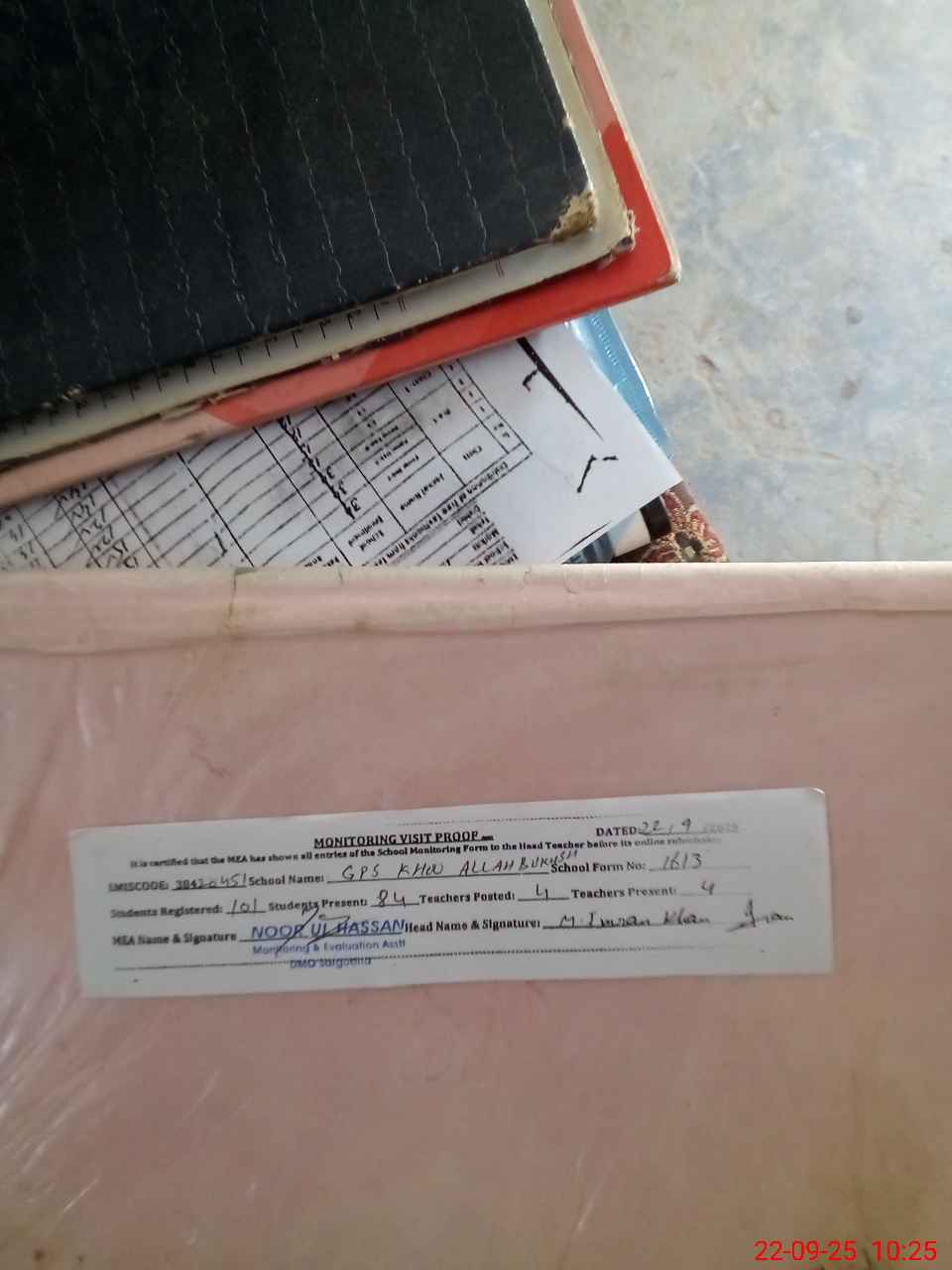 | Attendance Register | Head Teacher | MEA with School | Visit Proof |