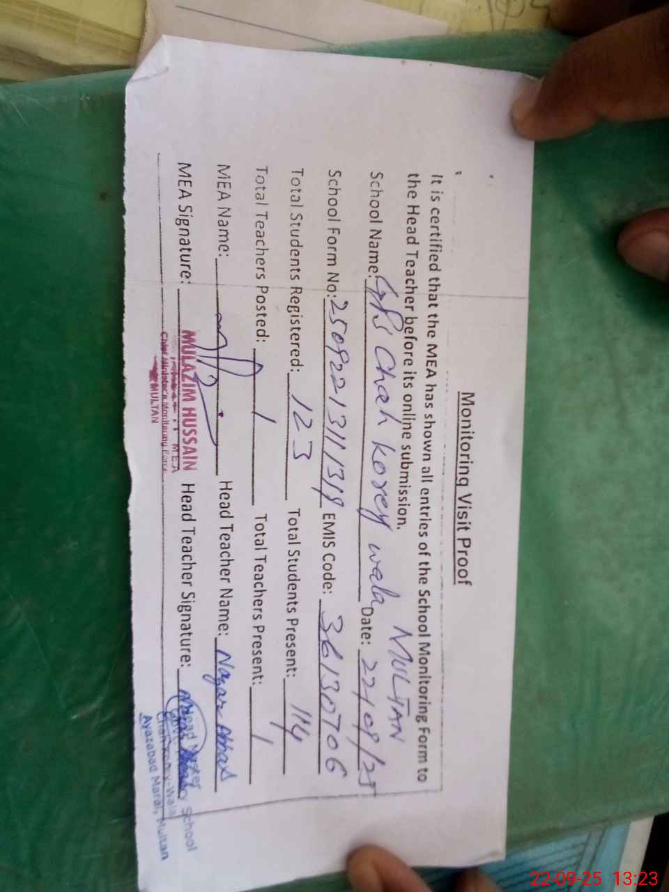 | EMIS Code: 36130706 | Name of School: GPS CHAH KOREY WALA MULTAN | |||