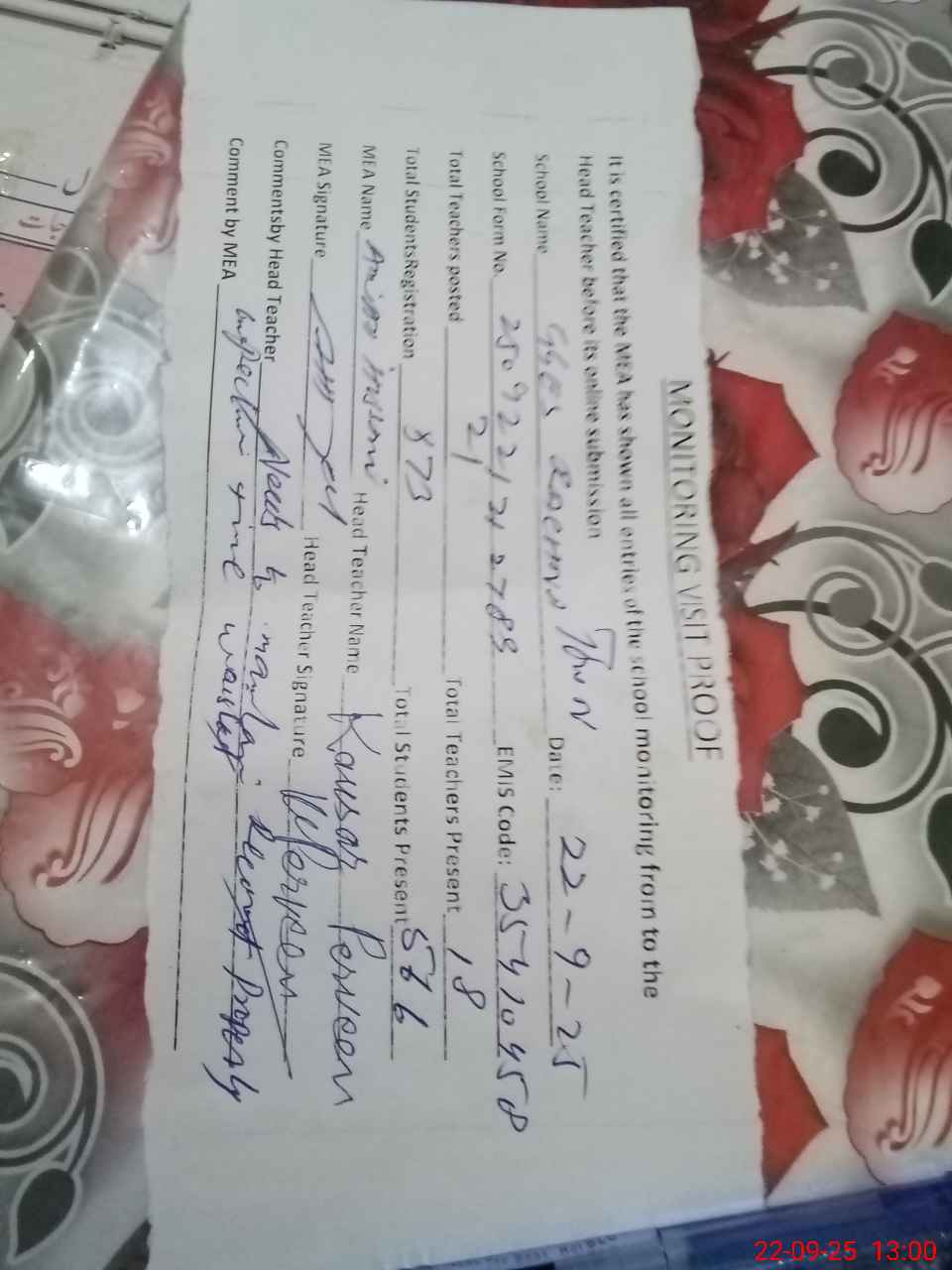 | Certified that this School was Inspected by the Undersigned MEA/DMO Today and the Information Stated Above is as Per Record. | |||||