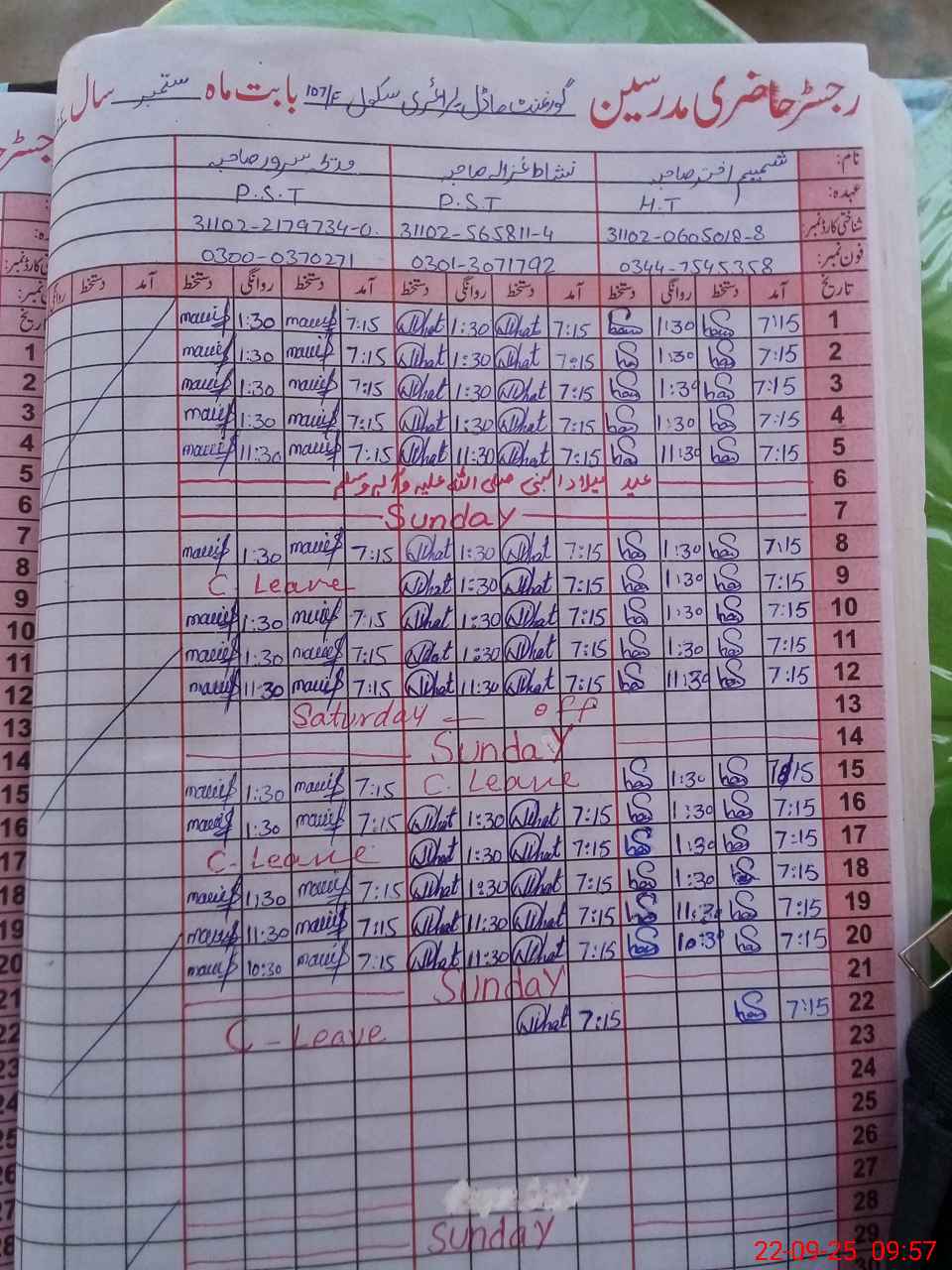 | Name: Sh**** Ak**** Designation: (School Headmaster's/Headmistress's) PST Phone/Cell Number: 03**** |