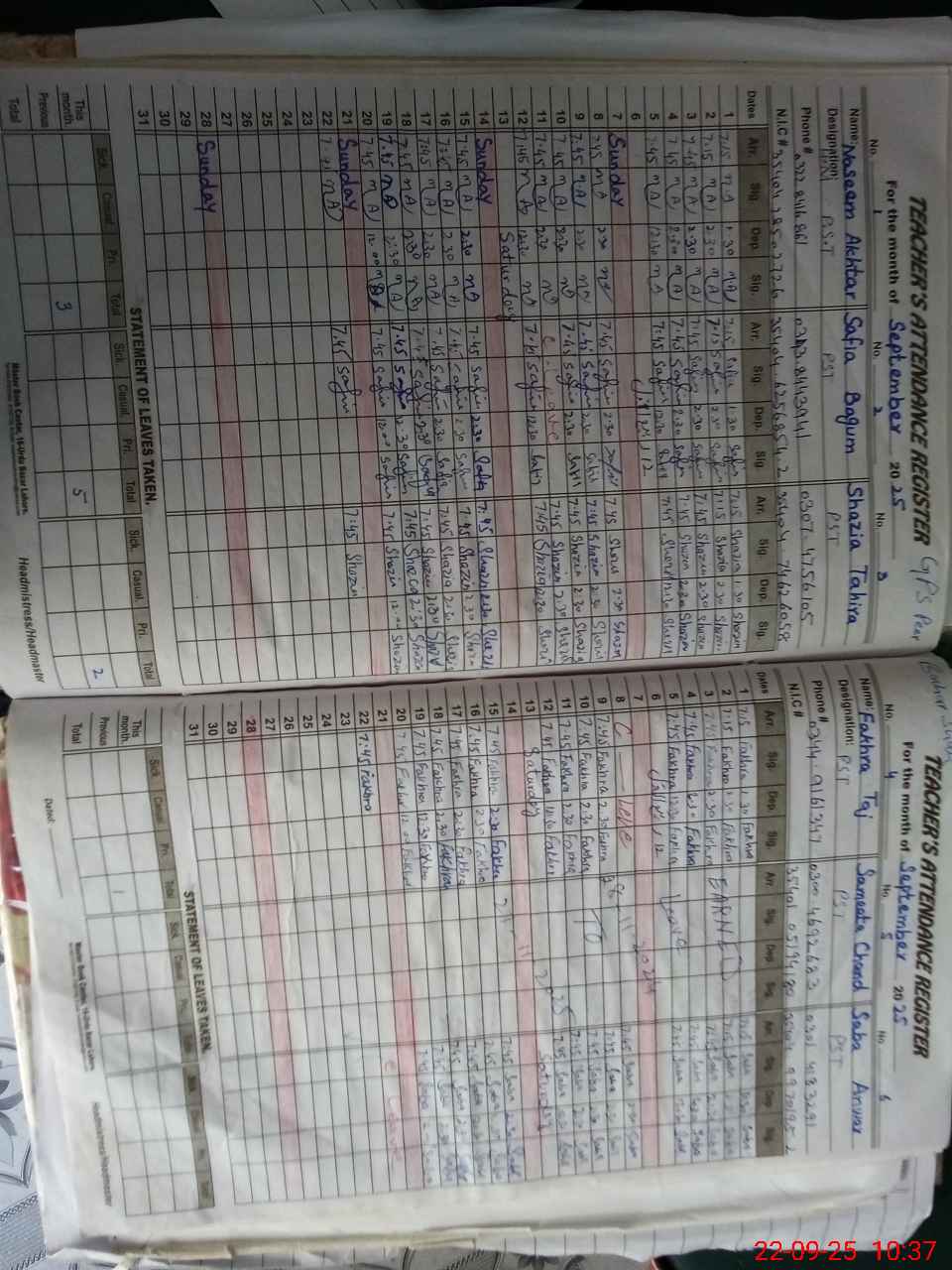 | Name: NA**** AK**** Designation: (School Headmaster's/Headmistress's) PST Phone/Cell Number: 03**** |