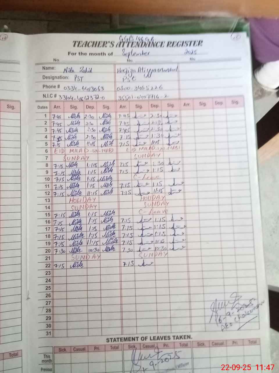 | Name: NI**** ZA**** Designation: (School Headmaster's/Headmistress's) ESE (Sci Math) Phone/Cell Number: 03**** |