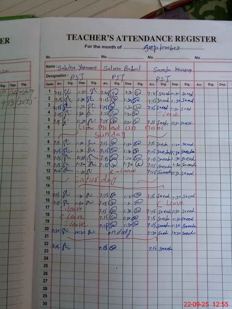 | CNIC | Full Name | Designation | R/C | Absence During Last Calender Month |