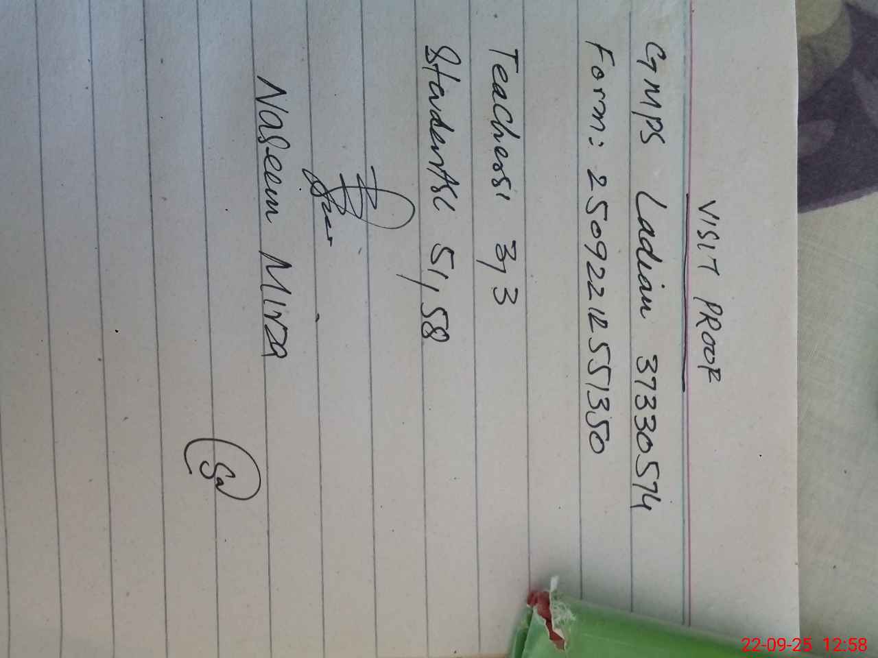 | Attendance Register | Head Teacher | MEA with School | Visit Proof |