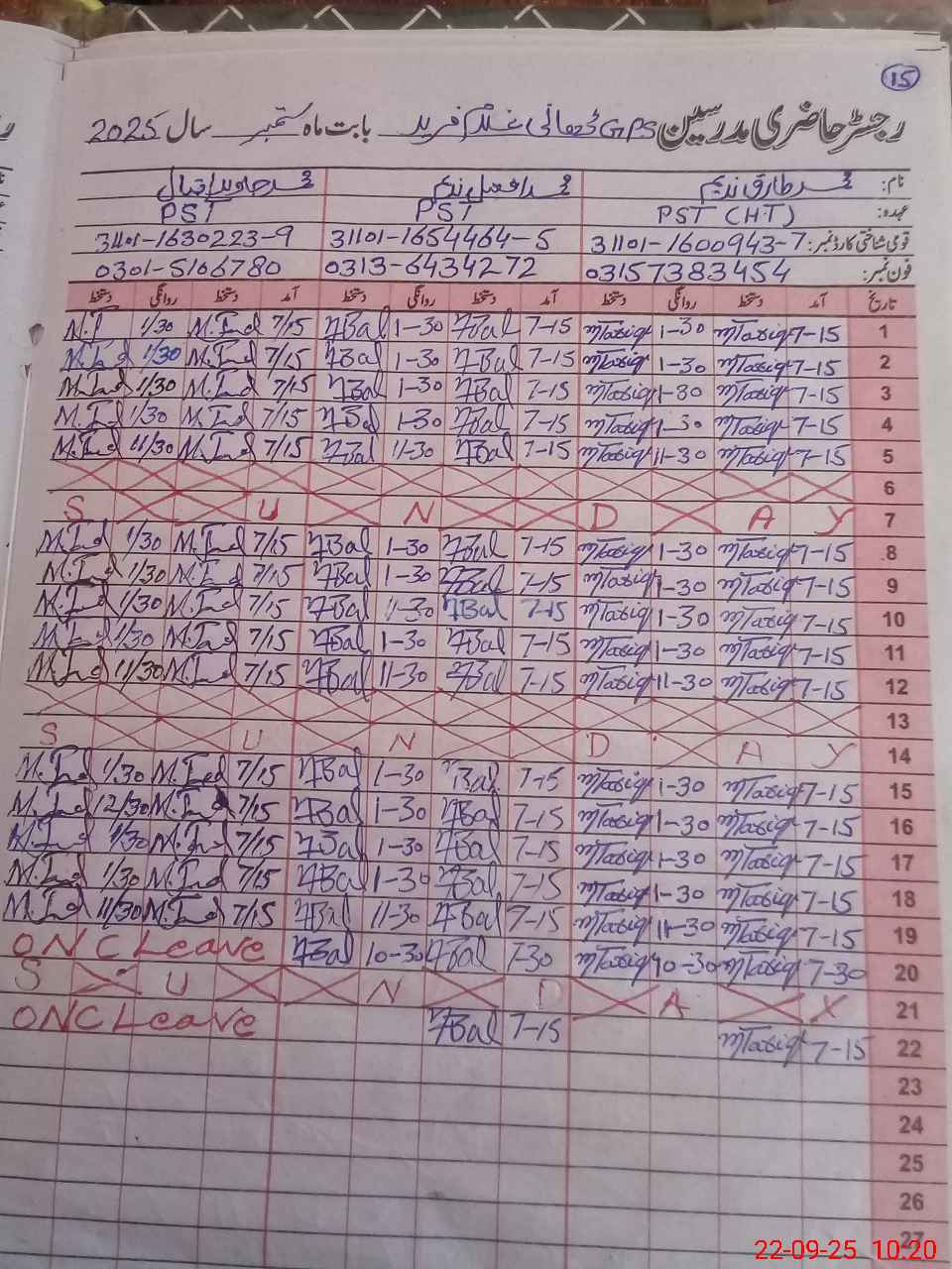 | 31**** | Mu**** Ja**** Iq**** | PST | Regular | 0 | 0 | 0 | 0 | 0 | 0 | 0 | 0 | 0 | Absent (Un-Authorized) |