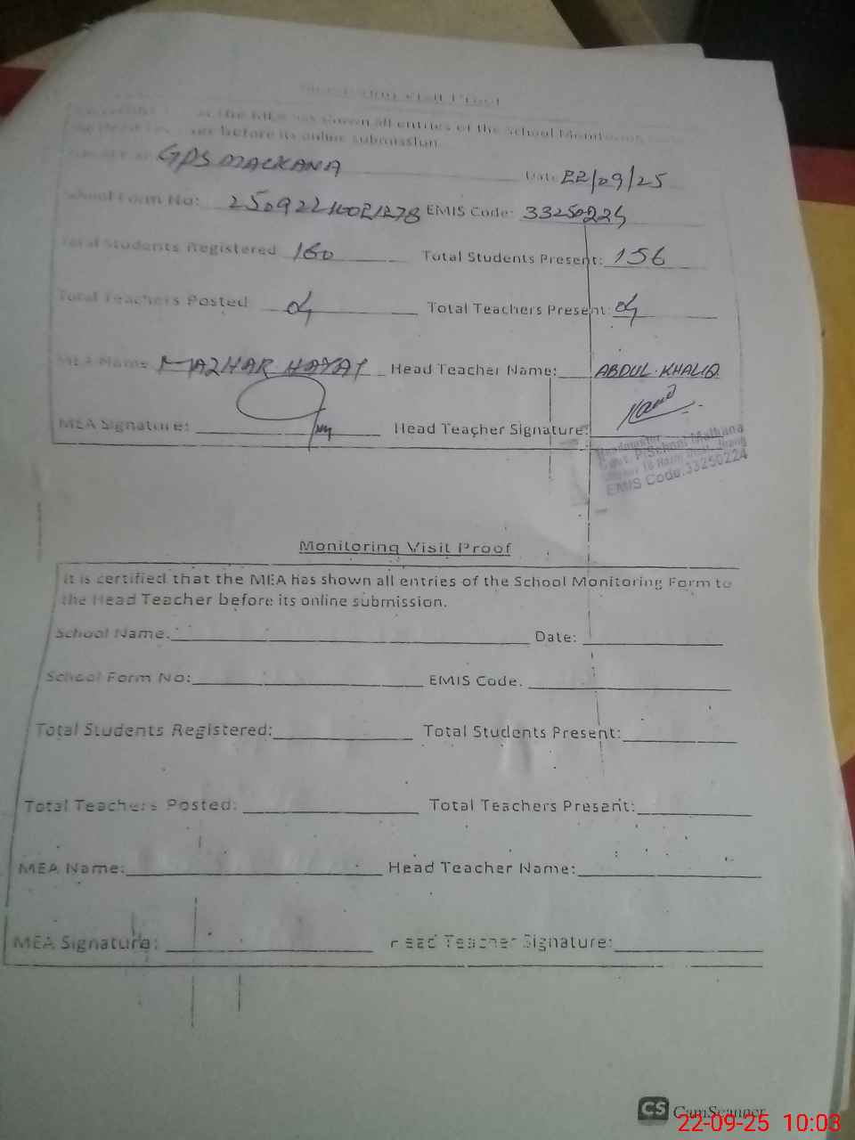 | EMIS Code: 33250224 | Name of School: GPS MALKANA | |||