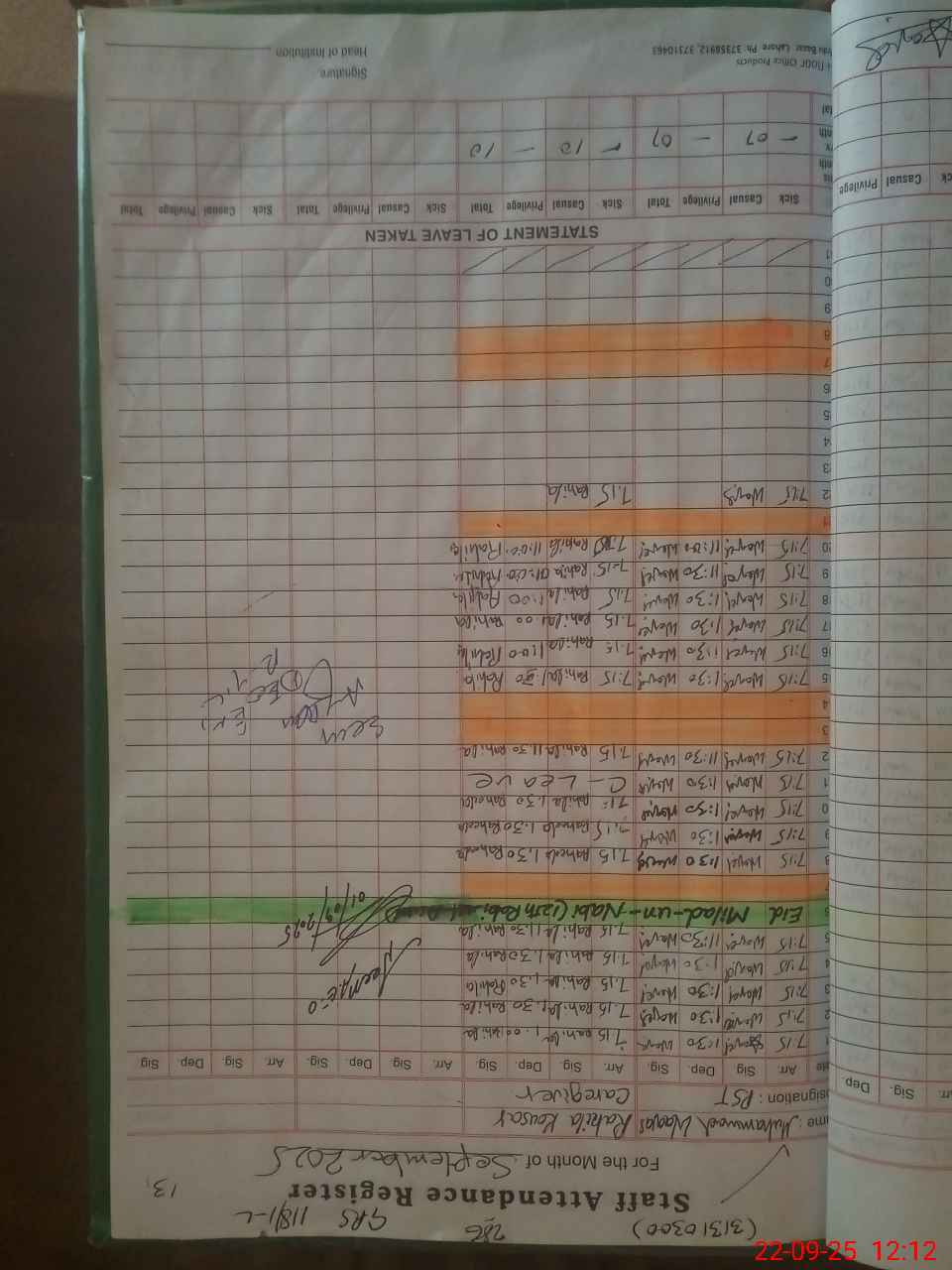 | CNIC | Full Name | Designation | R/C | Absence During Last Calender Month |