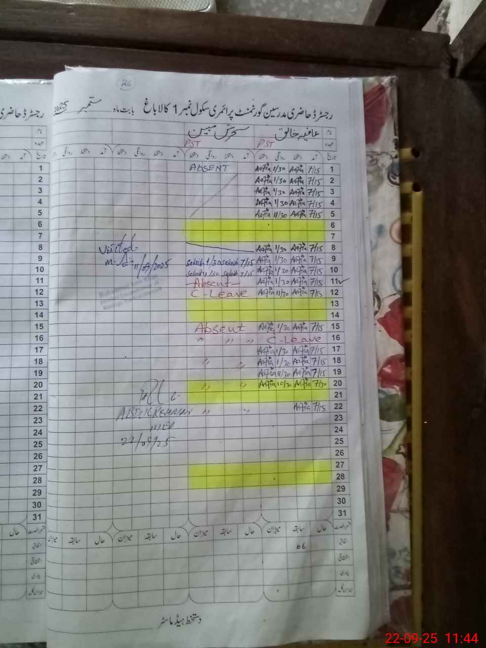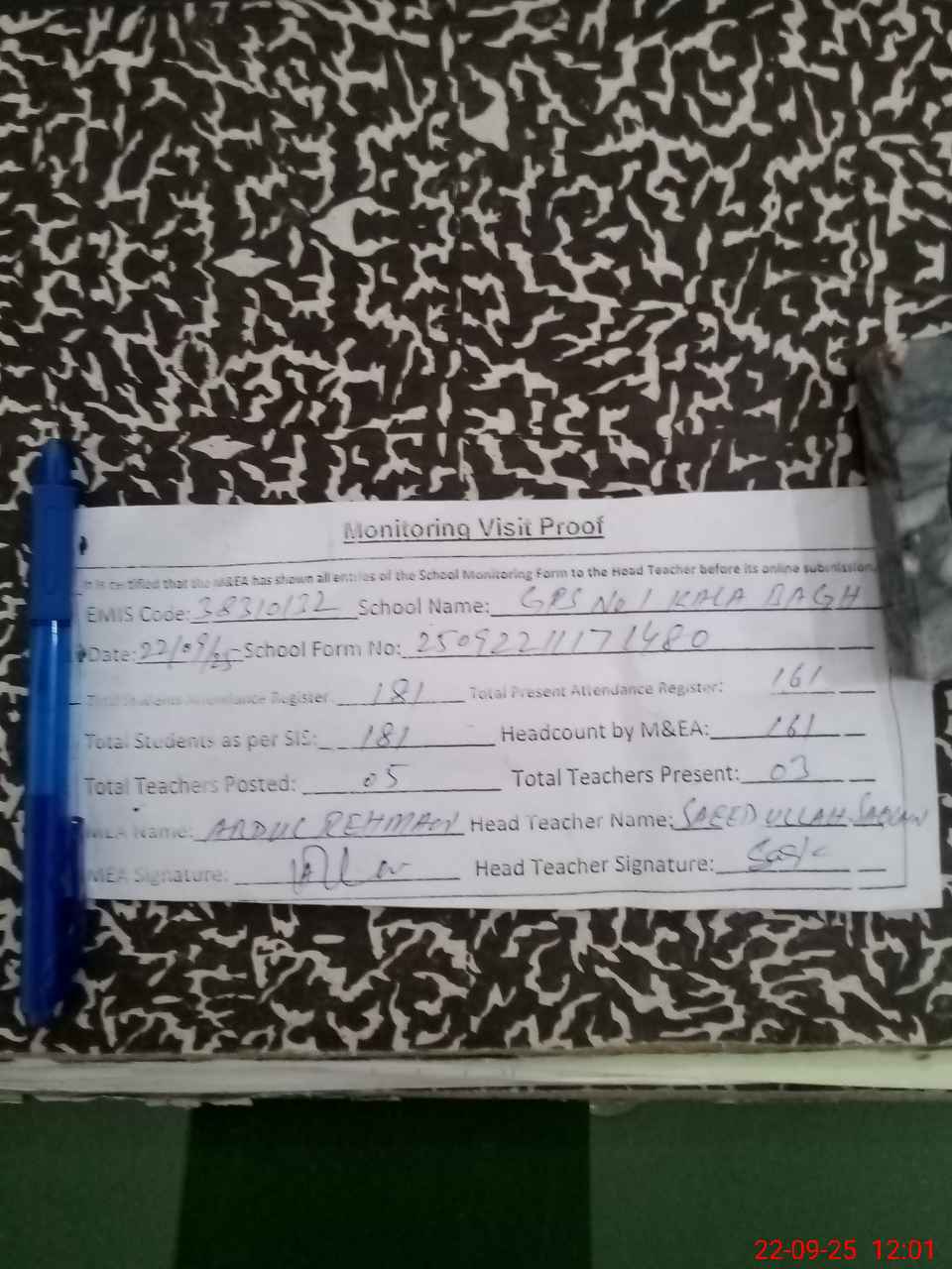 | EMIS Code: 38310132 | Name of School: GPS NO. 1 KALA BAGH | |||