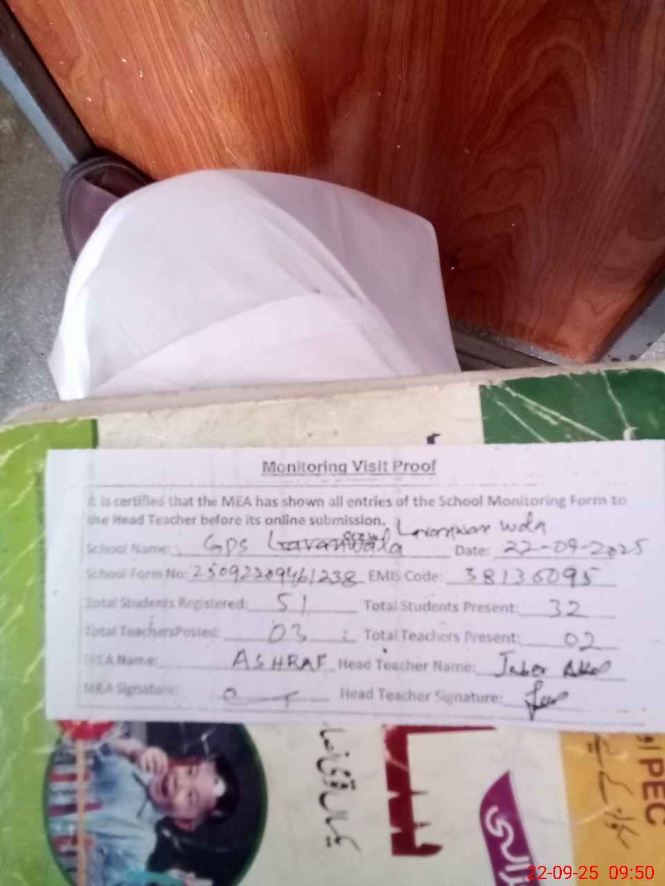 | EMIS Code: 38130095 | Name of School: GPS LARANWAN WALA | |||