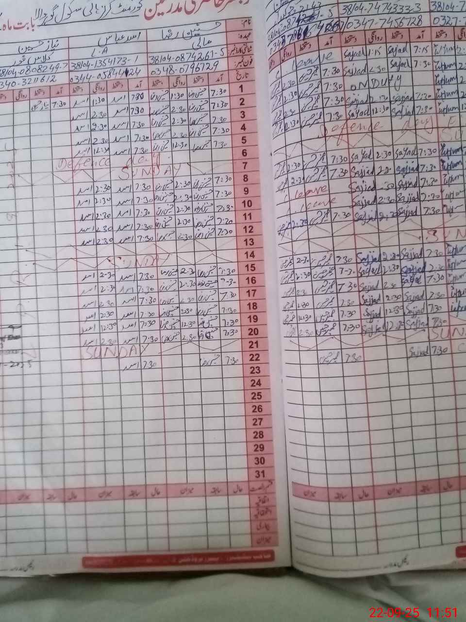 | CNIC | Full Name | Designation | R/C | Absence During Last Calender Month |