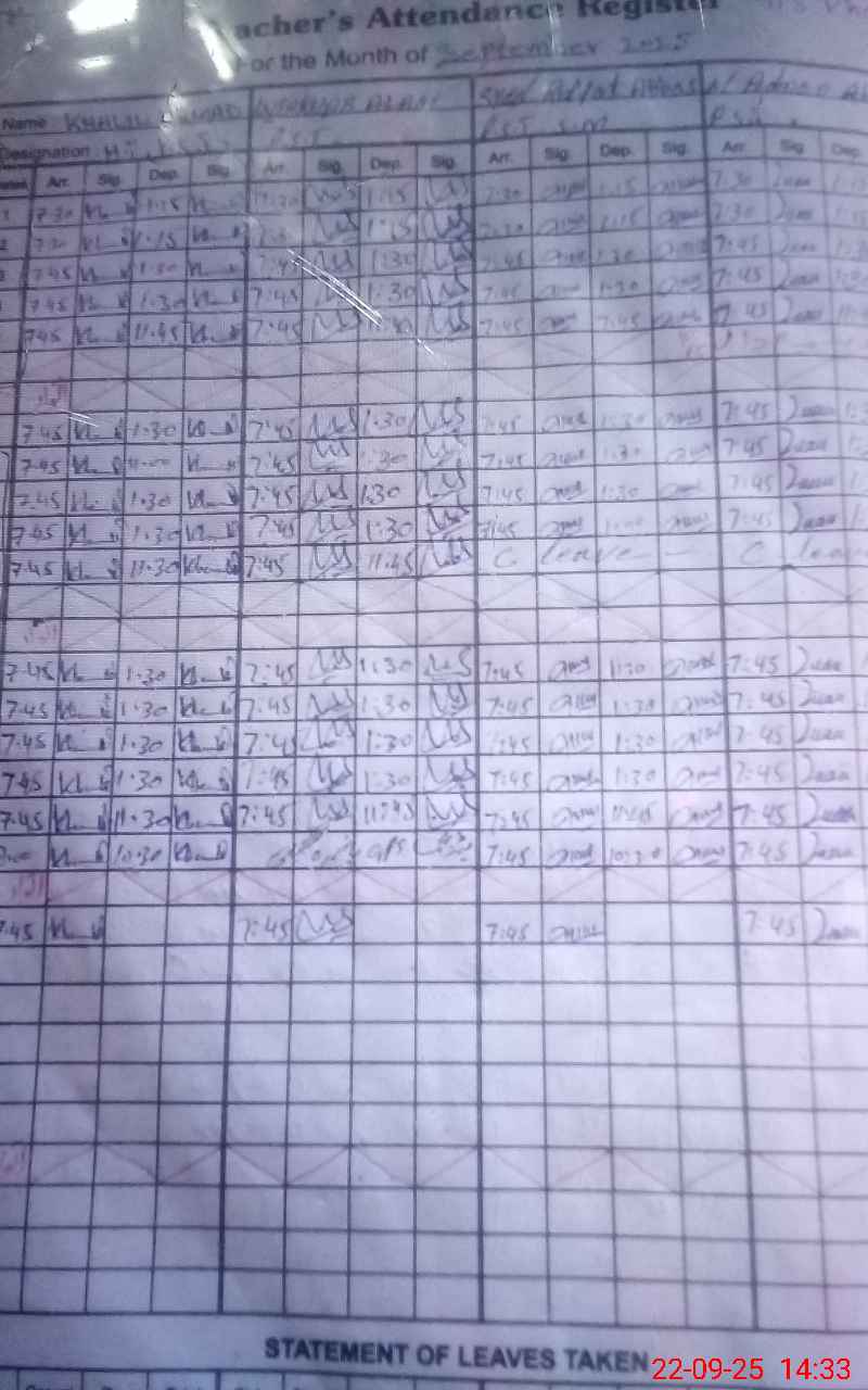 | Name: Kh**** Ah**** Designation: (School Headmaster's/Headmistress's) PST Phone/Cell Number: 03**** |