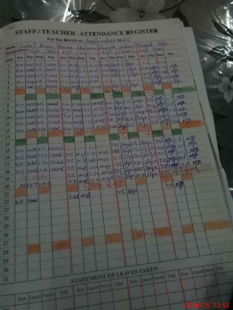 | Leave | Duty | Absent | Maternity | Medical | Ex- Pak |
