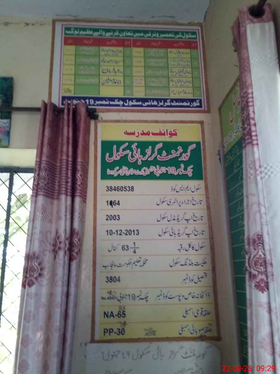 | EMIS Code: 38460538 | Name of School: GGHS CHAK NO.19 SB | |||