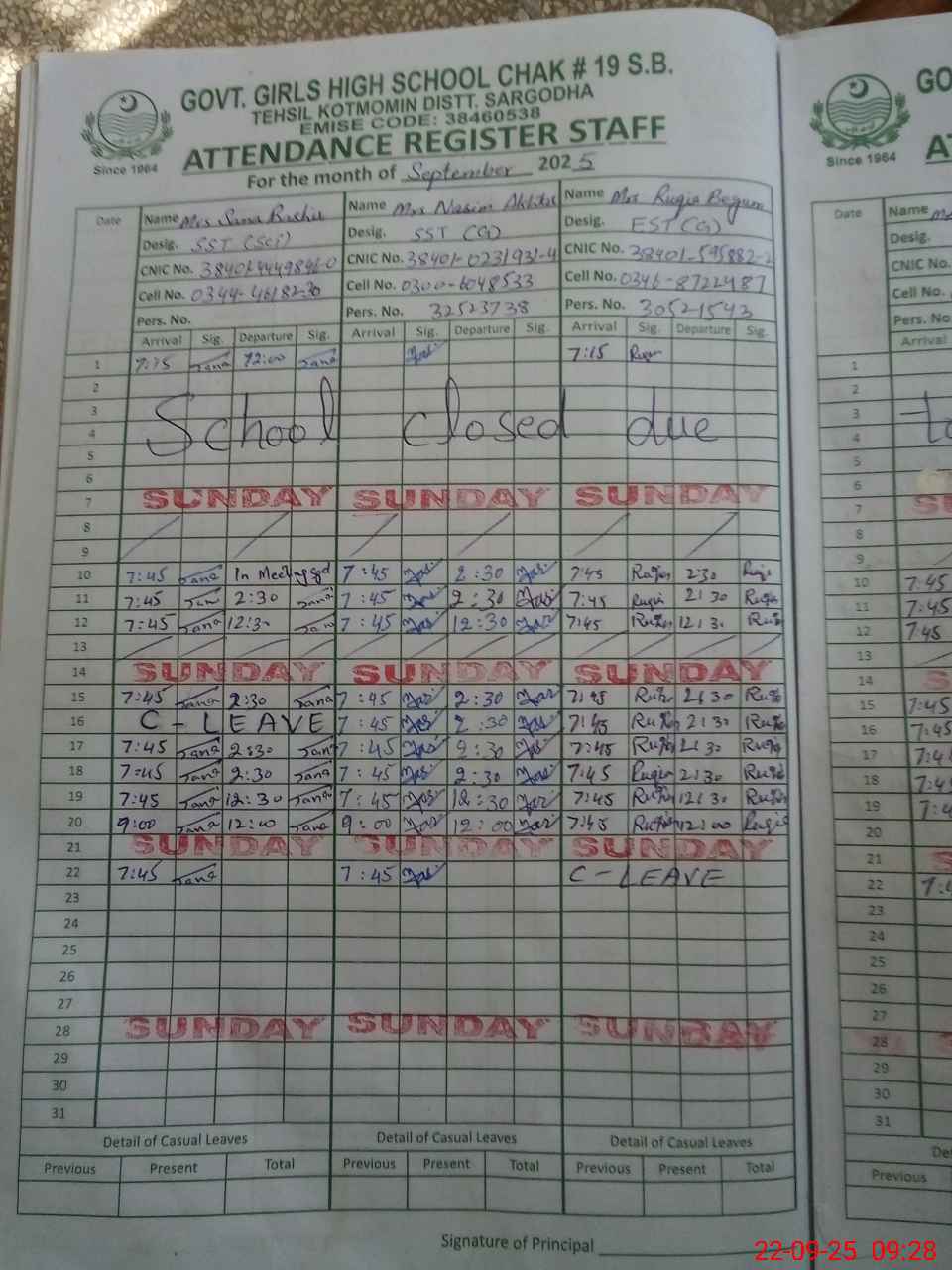 | Name: SA**** BA**** Designation: (School Headmaster's/Headmistress's) SST SCIENCE (HEADMISTRESS) Phone/Cell Number: 03**** |