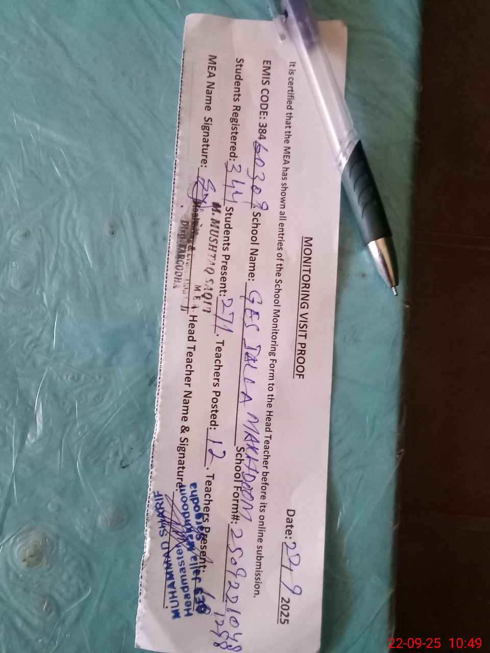 | EMIS Code: 38460309 | Name of School: GES JALLA MAKHDOOM | |||