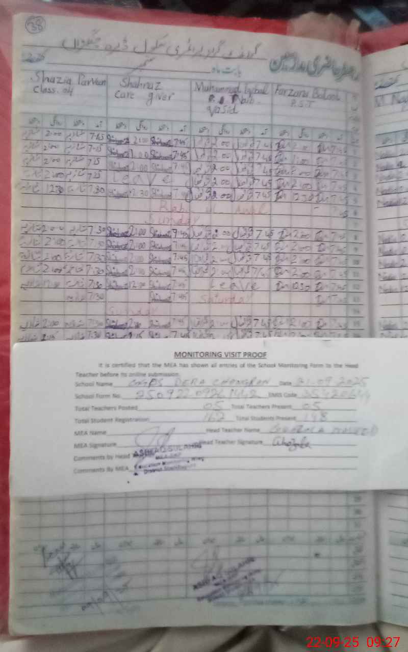| EMIS Code: 35420644 | Name of School: GGPS DERA CHANGRAN | |||