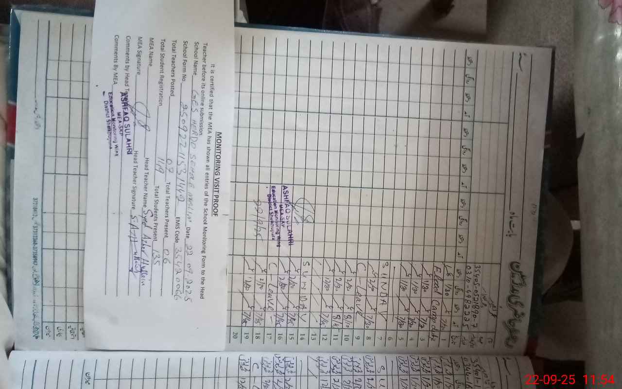 | Attendance Register | Head Teacher | MEA with School | Visit Proof |