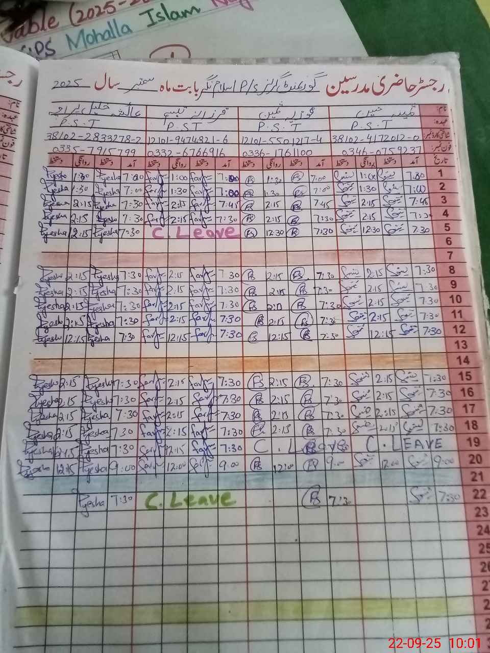 | Name: SA**** HU**** Designation: (School Headmaster's/Headmistress's) PST Phone/Cell Number: 03**** |