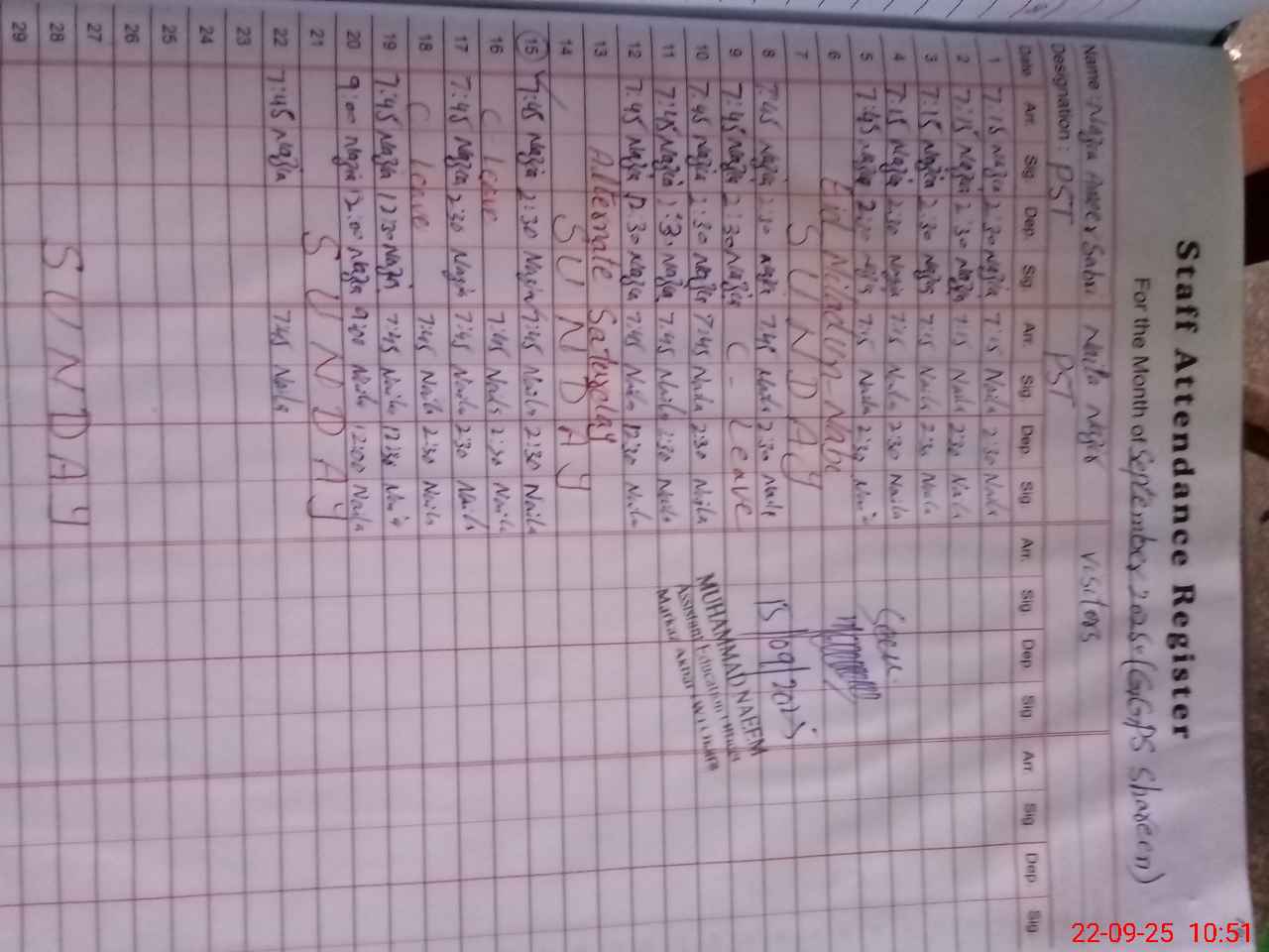 | CNIC | Full Name | Designation | R/C | Absence During Last Calender Month |