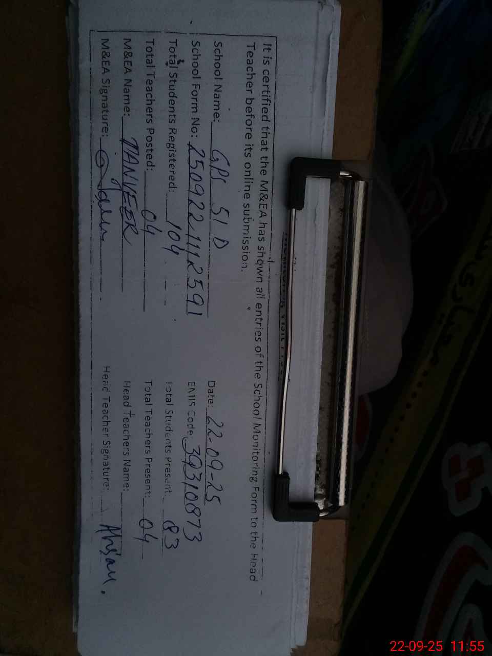 | EMIS Code: 39310873 | Name of School: GPS CHAK NO. 51-D | |||