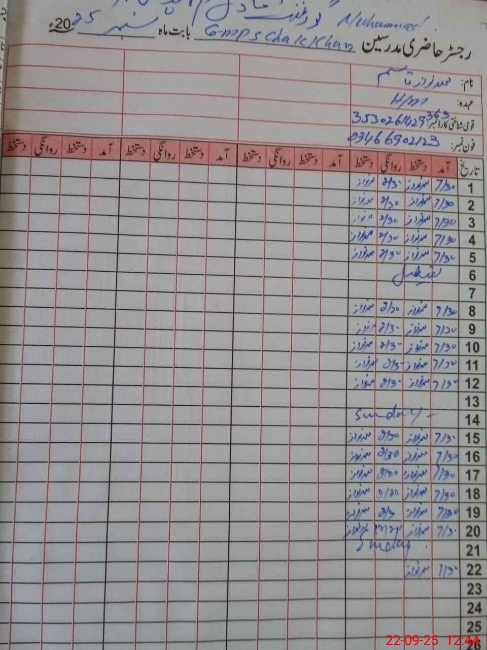 | Name: MNA**** Designation: (School Headmaster's/Headmistress's) PTC/JV Phone/Cell Number: 03**** |