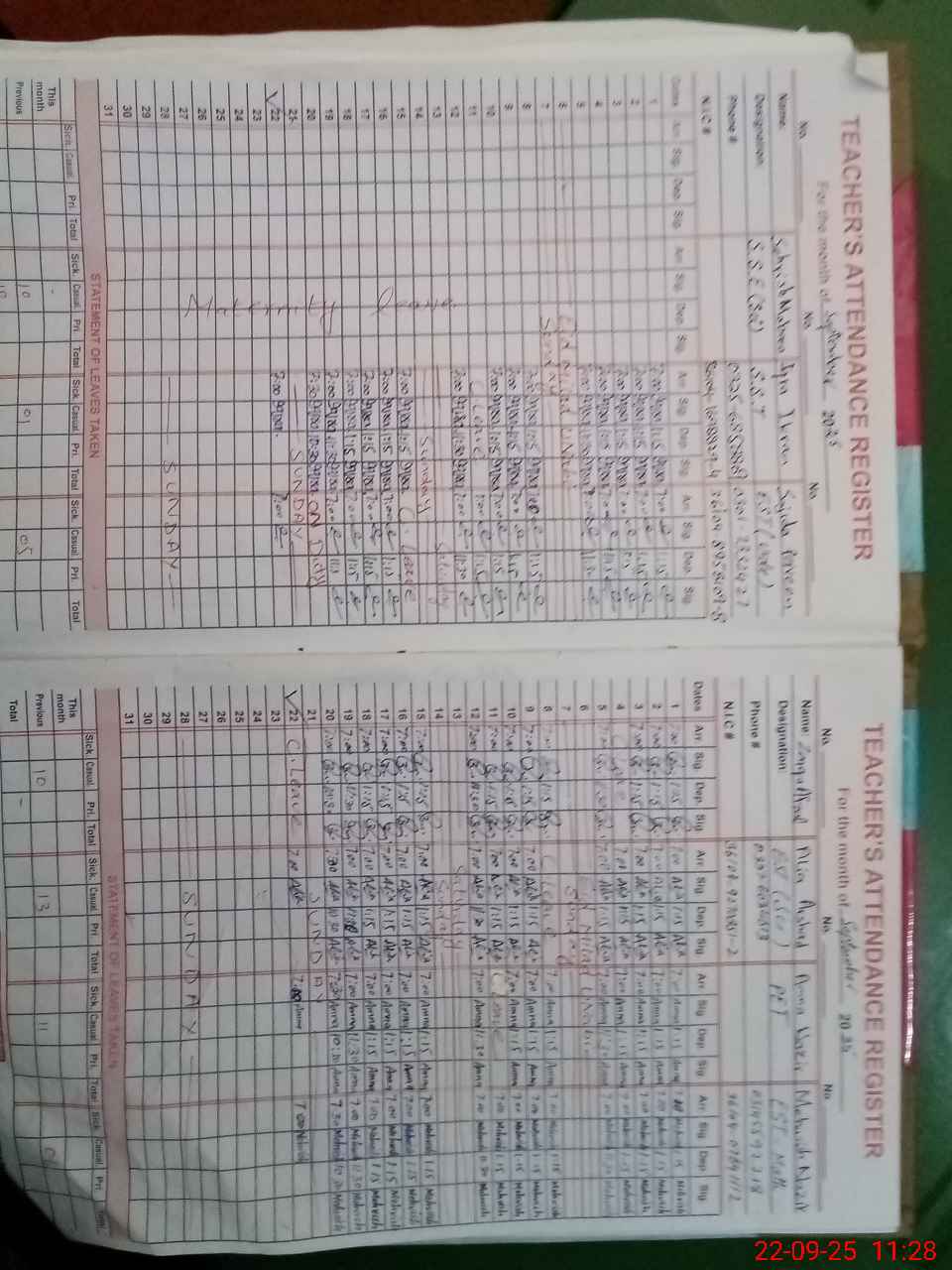 | CNIC | Full Name | Designation | R/C | Absence During Last Calender Month |