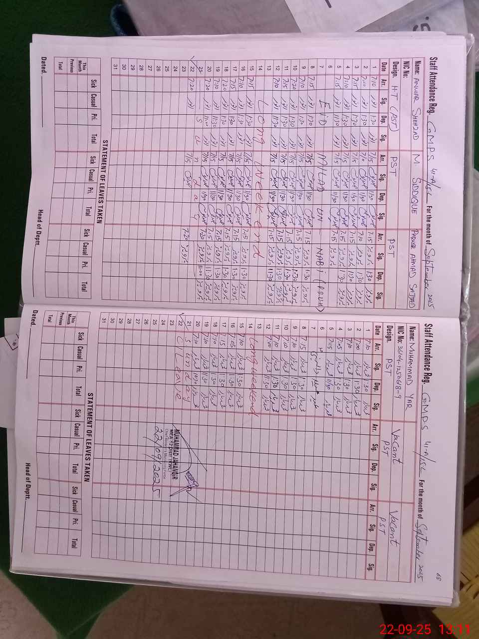 | Name: An**** Sh**** Designation: (School Headmaster's/Headmistress's) PST Phone/Cell Number: 03**** |