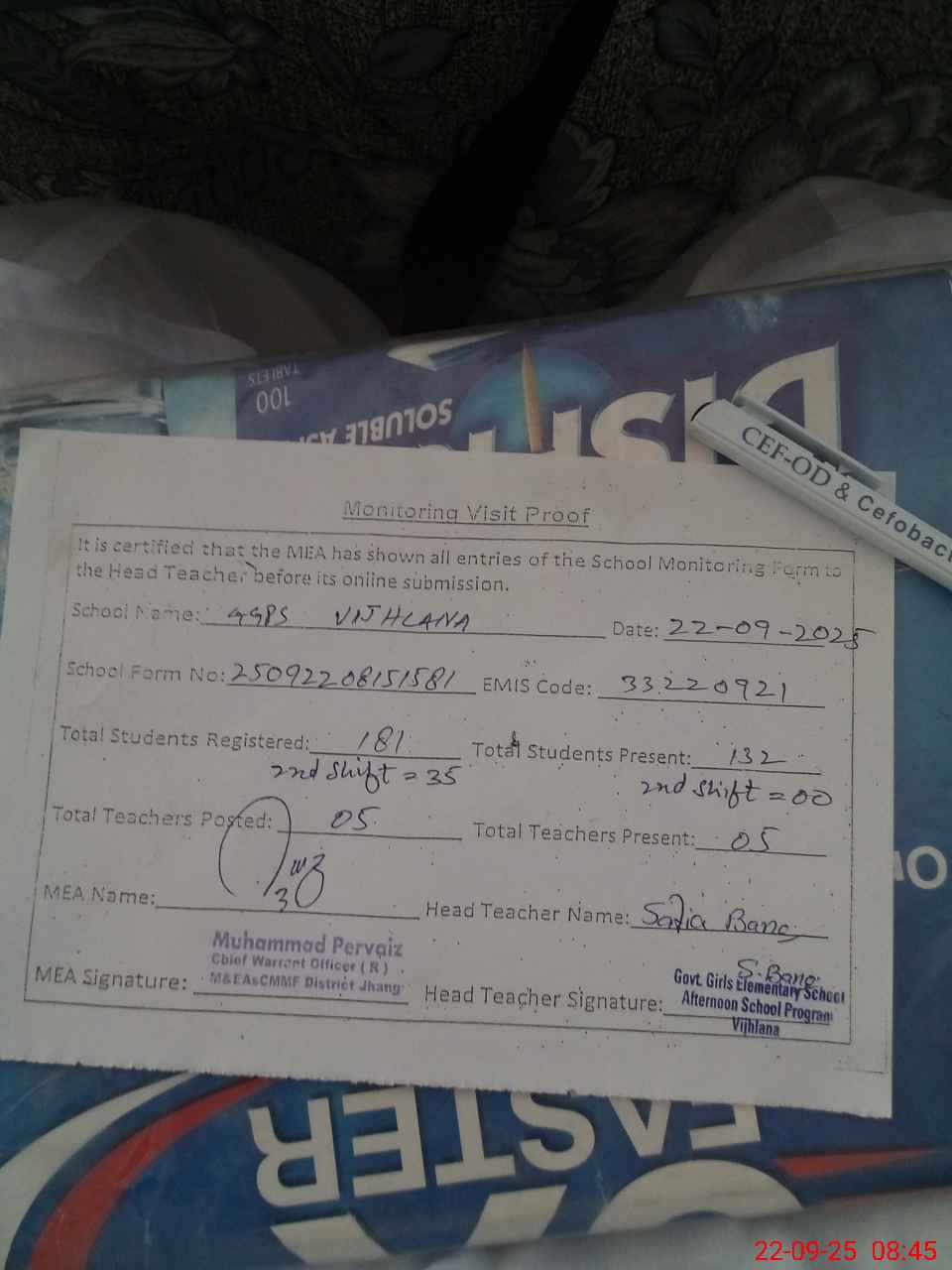 | EMIS Code: 33220921 | Name of School: GGPS VIJHLANA | |||