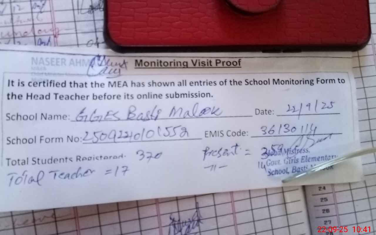 | Attendance Register | Head Teacher | MEA with School | Visit Proof |
