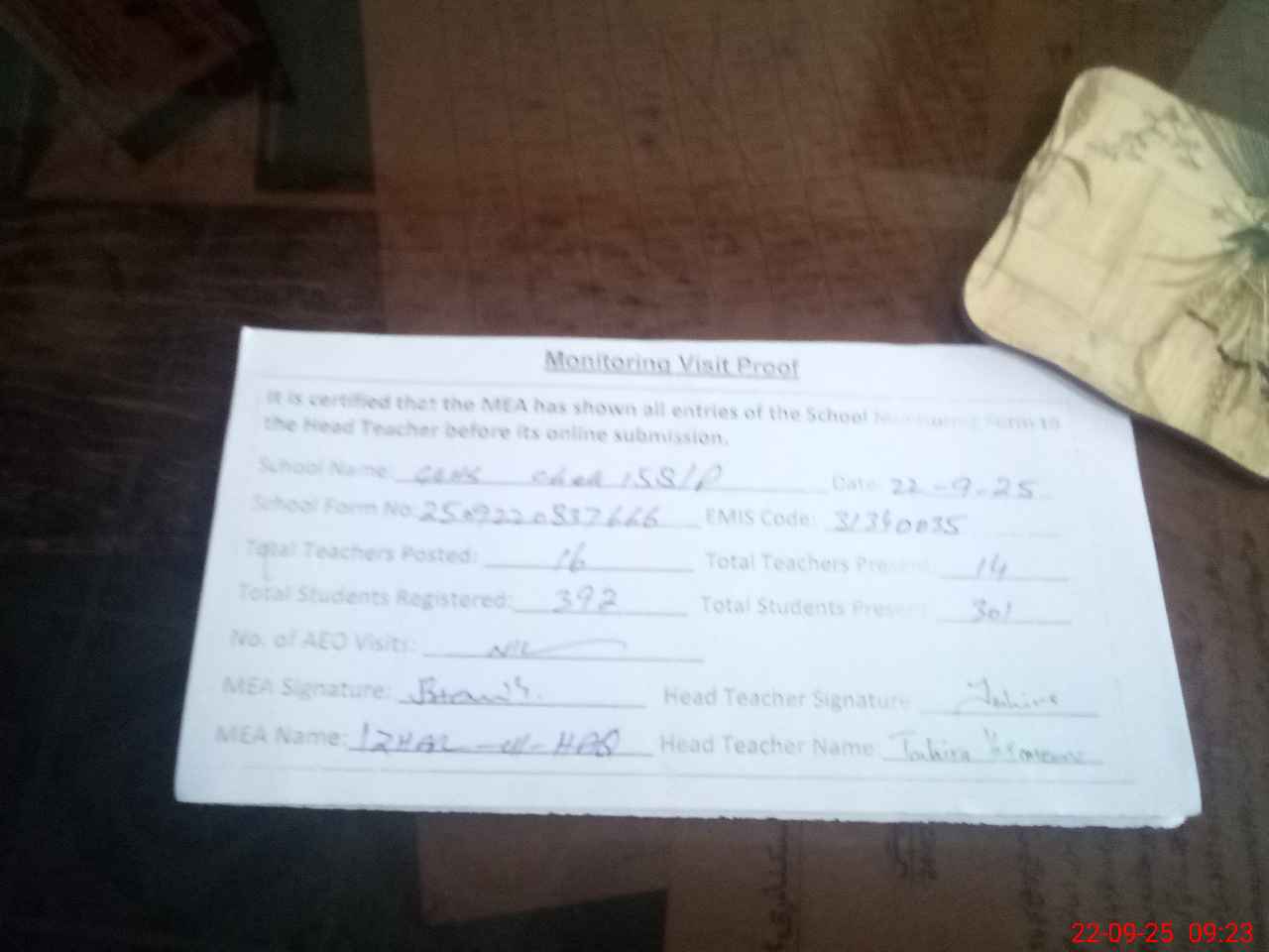 | EMIS Code: 31340035 | Name of School: GGHS CHAK NO. 158/P | |||