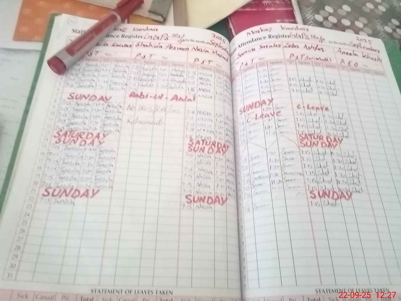 | CNIC | Full Name | Designation | R/C | Absence During Last Calender Month |