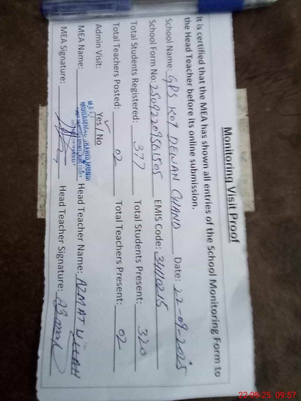 | EMIS Code: 34110215 | Name of School: GPS KOT DEWAN CHAND | |||