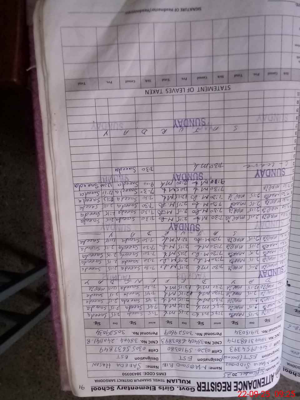 | Name: FA**** NA**** Designation: (School Headmaster's/Headmistress's) SST Phone/Cell Number: 03**** |