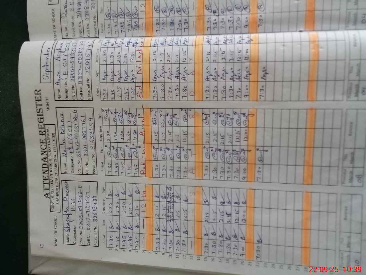 | Name: Aq**** As**** Designation: (School Headmaster's/Headmistress's) Est Phone/Cell Number: 03**** |