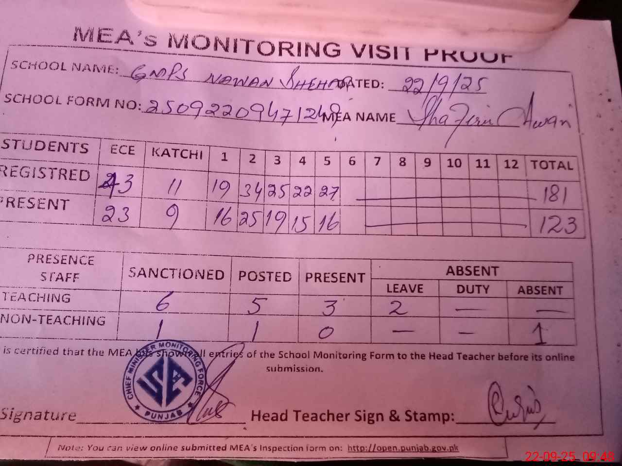 | EMIS Code: 36410441 | Name of School: GMPS NAWAN SHEHAR ABDUL HAKIM | |||